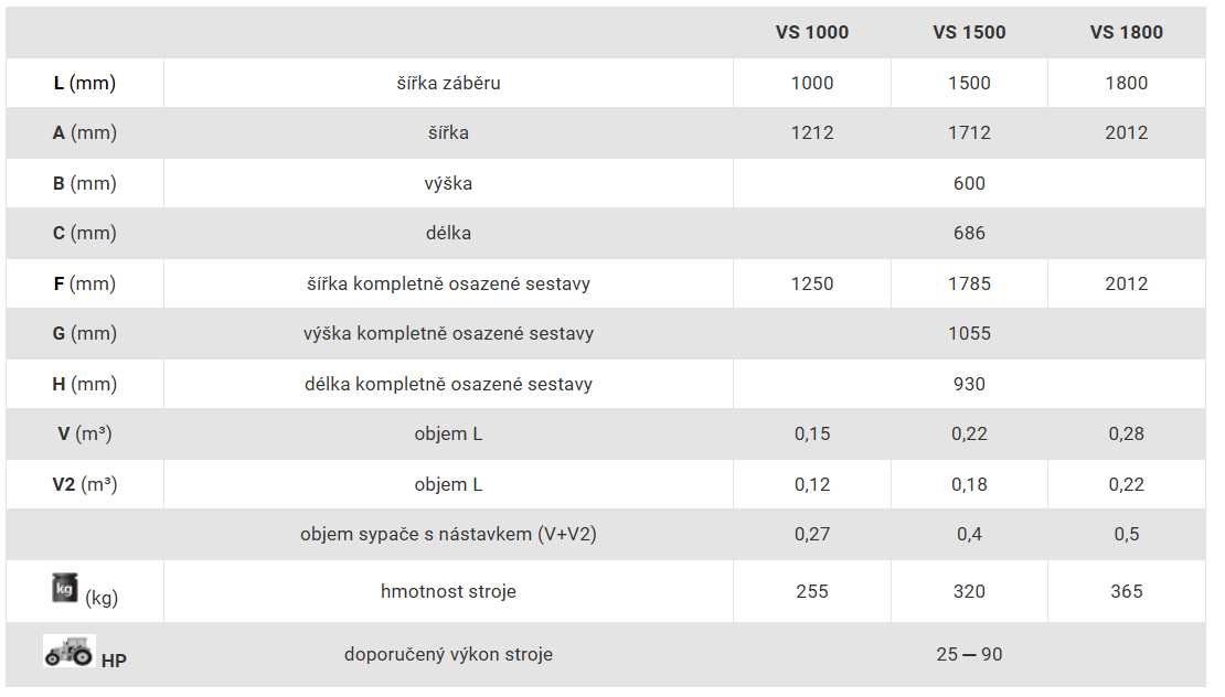 Dávkování je možné regulovat: změnou pojezdové rychlosti, změnou přítlaku válce, změnou počtu segmentů na válci nebo změnou otáček válce. Varianty stroje jsou bez nakládacího rámu nebo s nakládacím rámem.